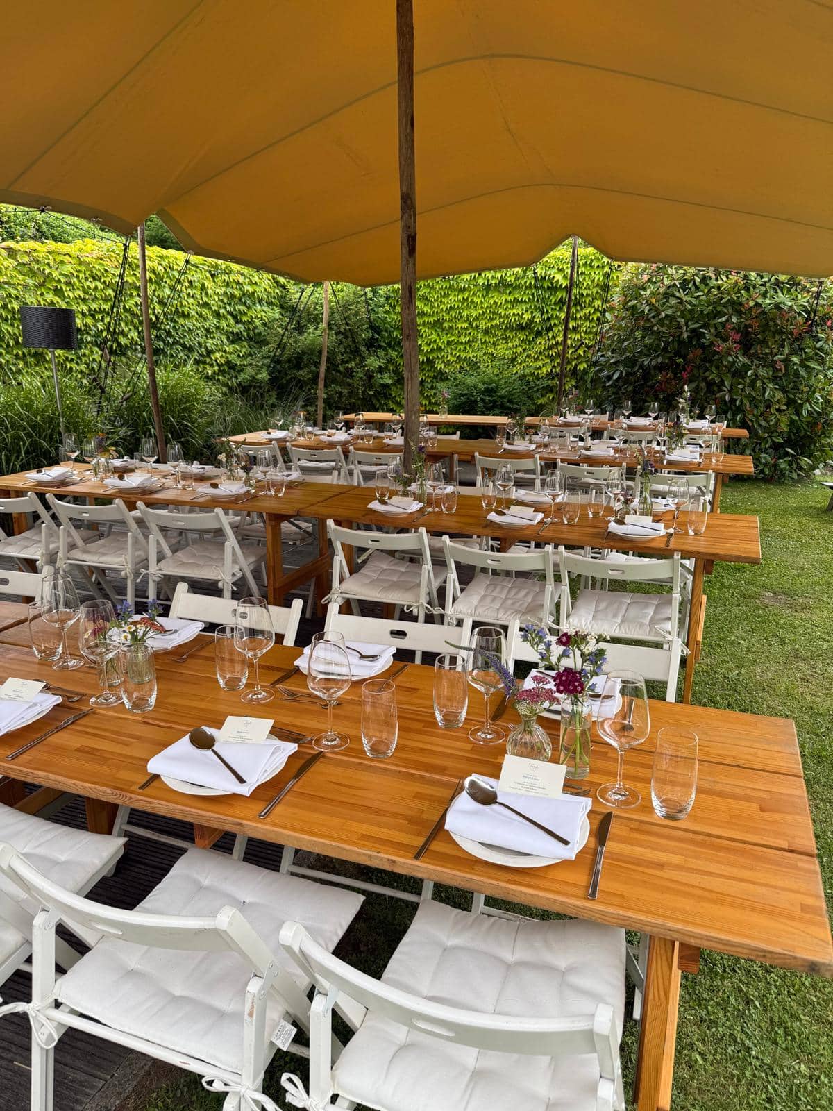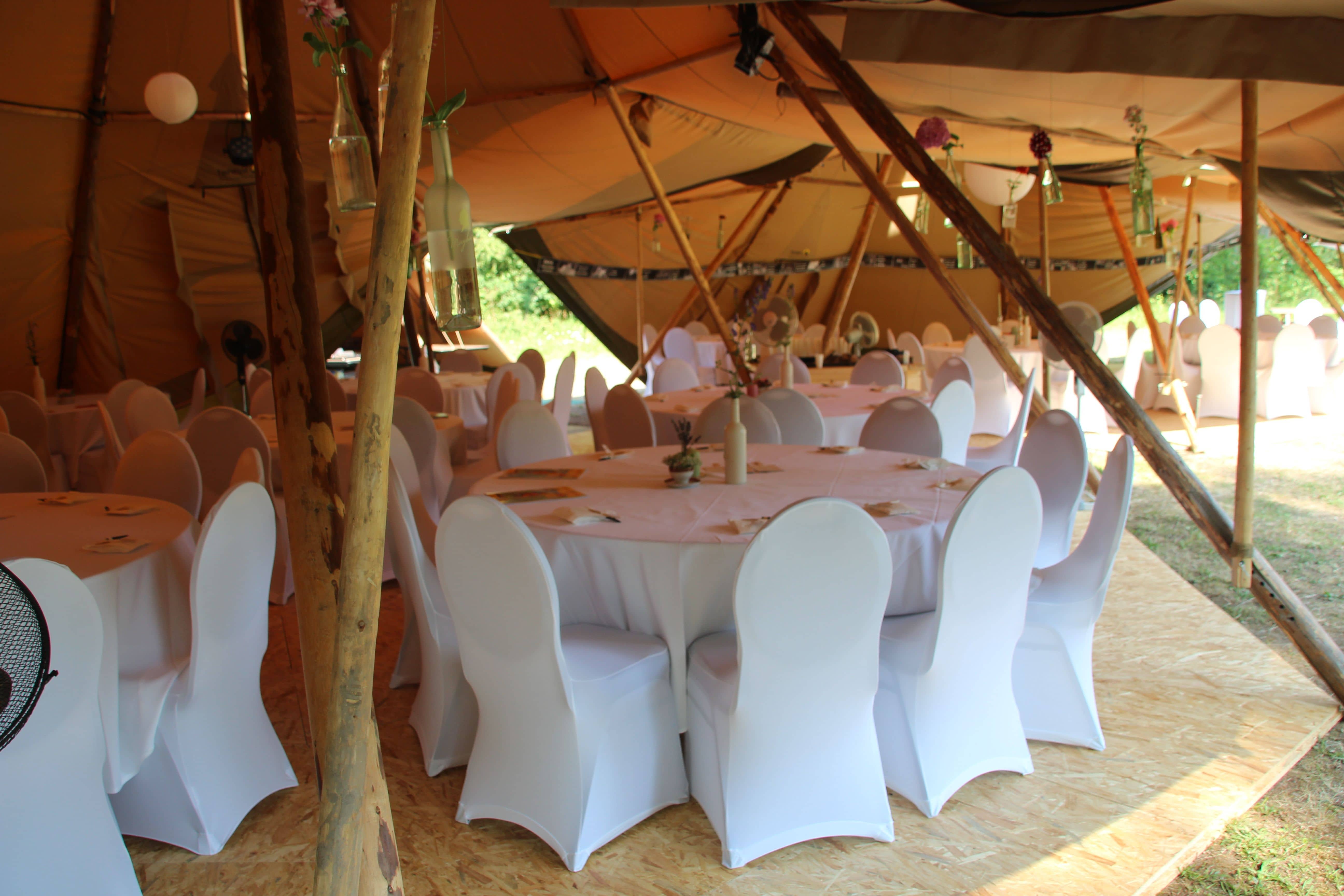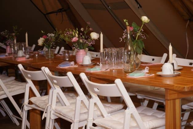 Unsere 200 cm langen und 70 cm breiten Tische sind extra bei einem Tischler für die Einsätze und in unseren Zelten gefertigt.