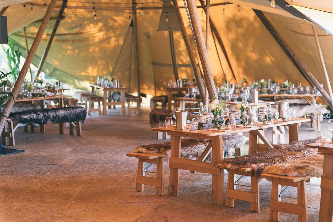 Die Bänke können wir mit ökologisch gegerbten und geflammten Schaffellen ausstatten, dort sitzen Sie dann besonders warm und weich.