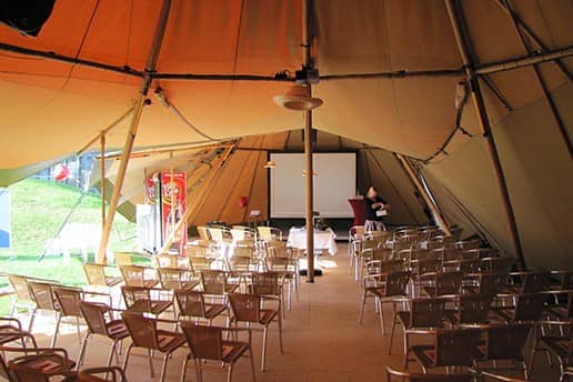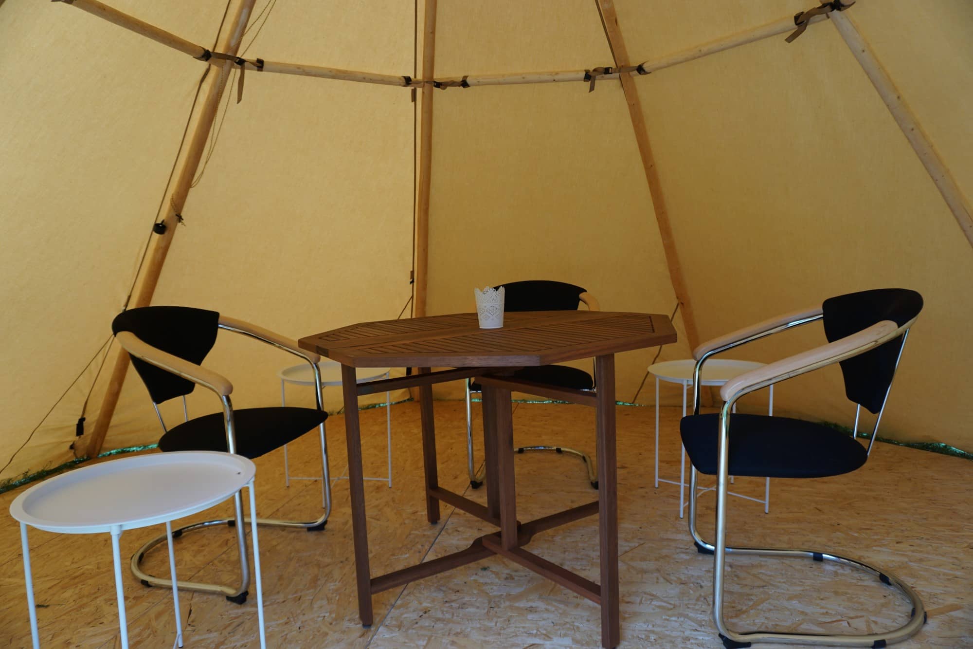 Das Tipi steht jeher für einen Ort des Austausches und Kommunikation. Die kreisförmige Form, die Natürlichkeit der Materialien und sein freundliches Erscheinungsbild laden zur Begegnung ein.