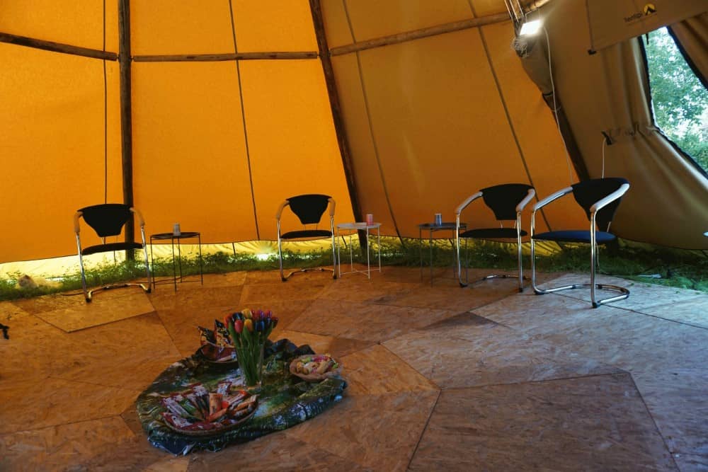Das macht das Tipi für uns zu einem inspirierenden und idealen Ort, um miteinander über Gegenwärtiges oder Neues zu sprechen oder auch zu zeigen.