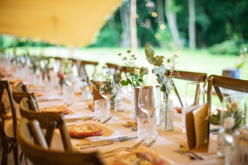 Unsere Stretchzelte gibt es in verschiedenen Größen – für Feiern von 20 bis 180 Personen. So habt Ihr immer genug Raum, ohne dass es an Gemütlichkeit fehlt. Und sollte es abends frischer werden: Die Zelte lassen sich an den Seiten nach unten ziehen und bieten so zusätzlichen Wetterschutz. Wärmepilze sorgen auf Wunsch für wohlige Wärme.